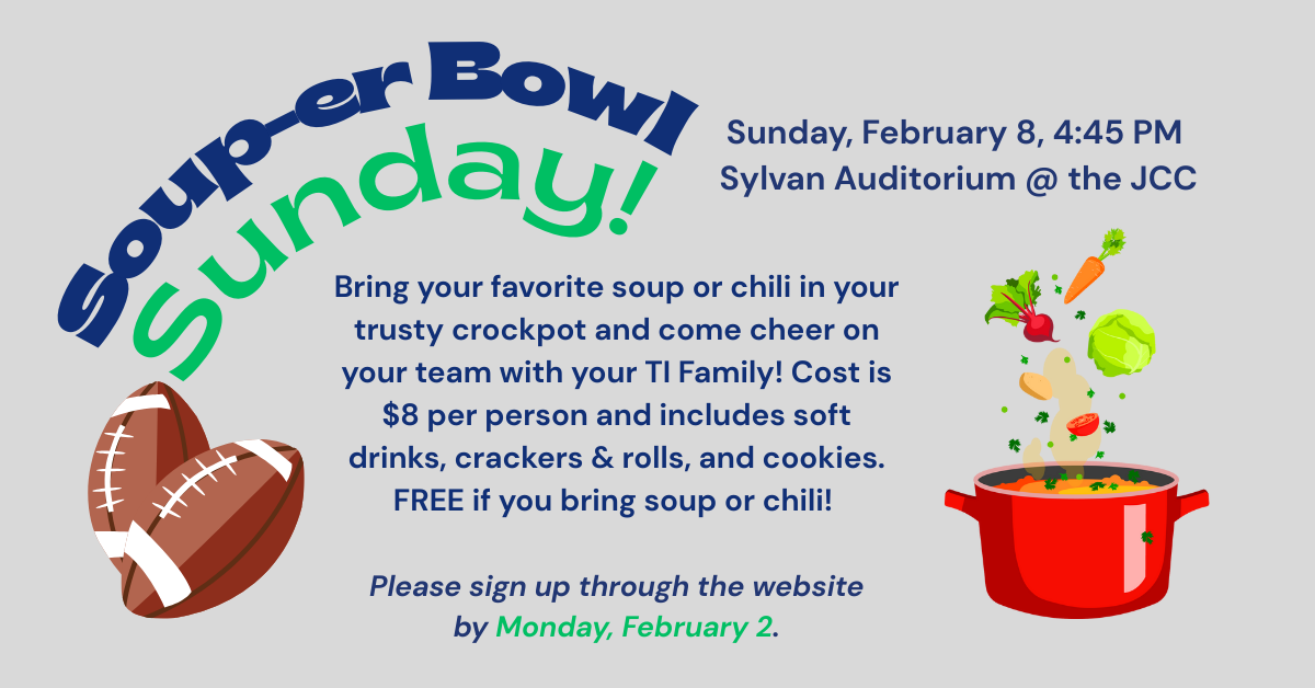 Come watch the big game and compete in a cookoff for the best soup and chili with your TI Family!
