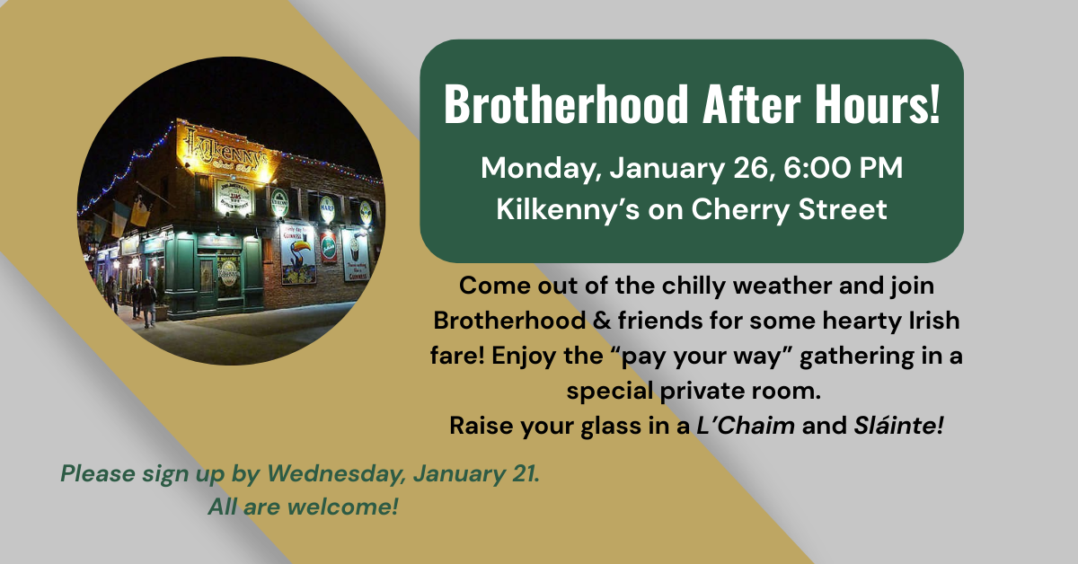 Join us as we welcome in Shabbat. Come at 5:30 p.m. for our joyous pre-oneg.