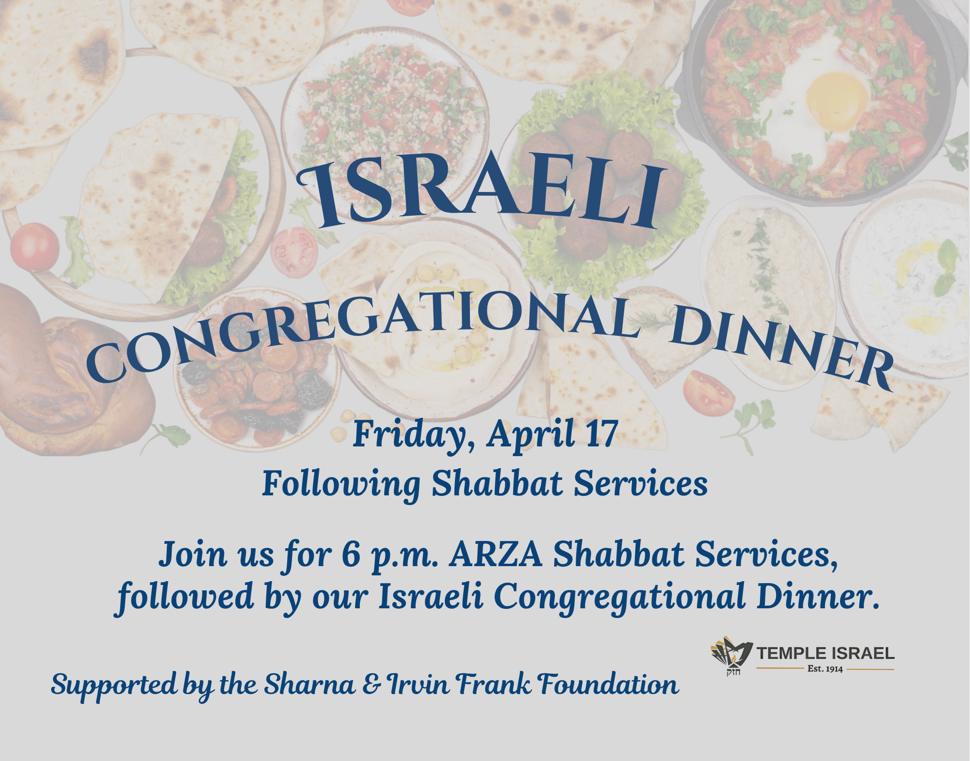 Come have dinner with your Temple Israel family on April 17. Sign up by April 14